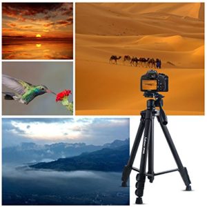 Camera Tripod 60 Inch Portable Travel Aluminum Lightweight Tripod for Canon Nikon Sony Olympus DV DSLR SLR with Phone Clip Bubble Level Load Up to 10 kg ( Black )