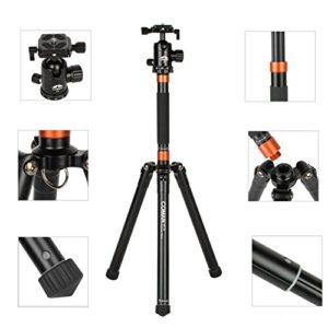 COMAN MT70 Portable Travel Tripod Aluminum Alloy Lightweight 62.2 inches with 360 Degree Ball Head for DSLR Camera and youtube video