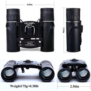 USCAMEL Folding Pocket Binoculars Compact Travel Mini Telescope HD Bak4 Optics Lenes Easy Focus 8×21 Colour Black