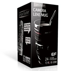 Travel Coffee Mug with Spoon, Camera Lens Mugs Coffee Cups with Lid Stainless Steel Tumbler Cup Leak-proof Wide Mouth for Coffee Milk Tea Water – Ideal Gift Canon EF24-105mm f/4L IS USM lens