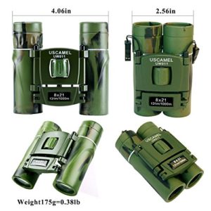 USCAMEL Binoculars Compact, 8×21 Folding Pocket Size, Travel Mini Telescope HD Bak4 Optics Lenes Easy Focus, Army Green