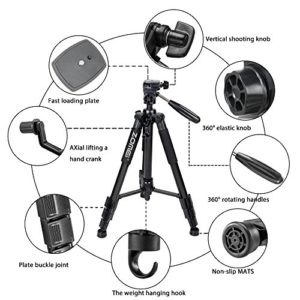 ZOMEI 55″ Compact Light Weight Travel Portable Folding SLR Camera Tripod for Canon Nikon Sony DSLR Camera Video with Carry Case(black)