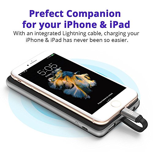- PERFECT COMPANION FOR YOUR IPHONE & IPAD. Built-in Lightning cable allows you to charge your iPhone & iPad on-the-go without carrying any extra cables. And the built-in Lightning cable comes with an inherent magnet that seamlessly flushes on the leather surface. Free yourself from long and bothering charging time.