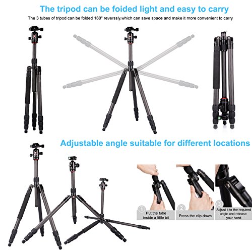 - Ultra compact: the tripod legs can be inverted and folded back 180 degrees giving it a compact size of 16.5″, easy to put into your backpack and carry to everywhere.