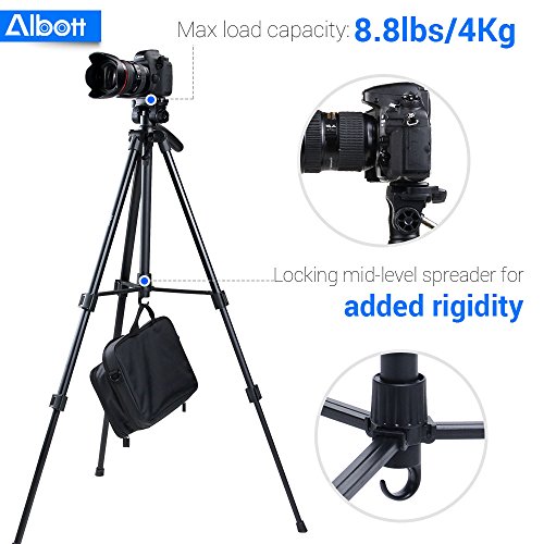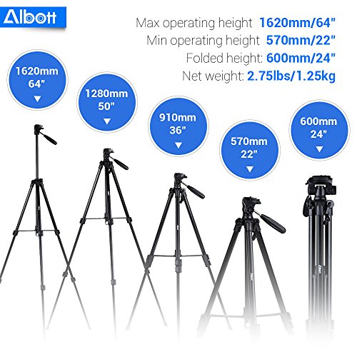 - 2.64 lbs Net weight; 8.8 lbs Load Capacity; 3-Section Tripod Legs; 22″-64″ Tripod Height Range
