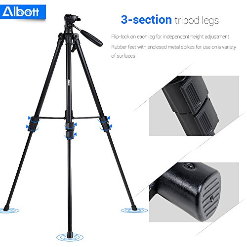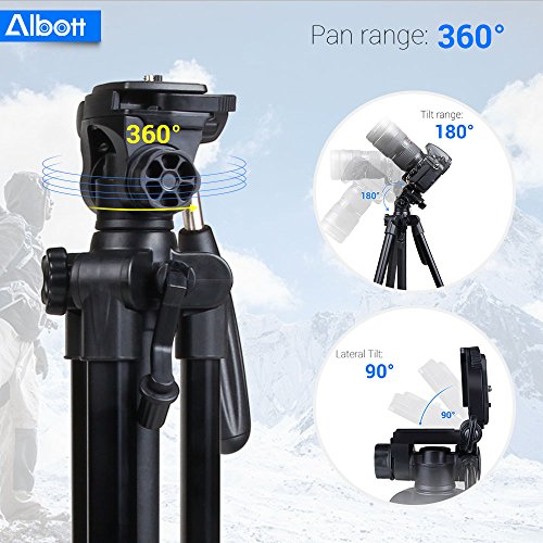 - 3-Way Flexible Pan Head with Tilt & Swivel Motion; Provide 360 degree Rotation Panoramas; Built-in Bubble View Levels