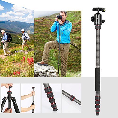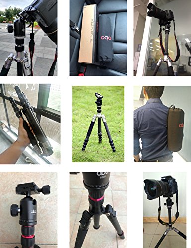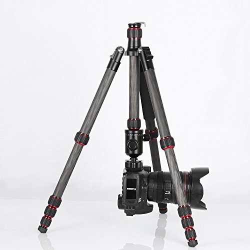 Carbon Fiber Tripod Kit 60″ Professional Portable Travel Tripod for Canon, Sony, Nikon, Samsung, Panasonic, Olympus, Kodak, Fuji, GoPro devices,Camera Compact and Video Camera, N3, Red