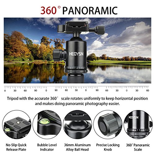 - Professional. A precision bubble level and 360 degree ball head with quick release plate makes taking panoramic photos easier with the accurate 360 degree scale
