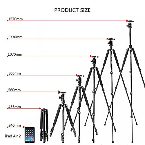 The tube is made of high quality and high strength aviation aluminum alloy which make the tripod very strong and stable.